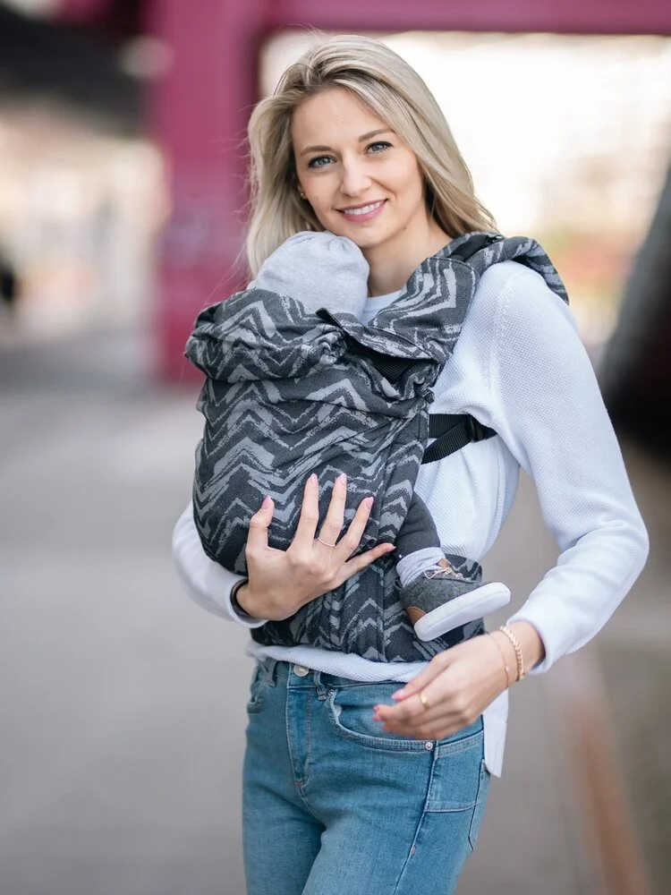 Šátkovina zajišťuje přirozené tvarování kolem těla dítěte i rodiče. Nosítko je vhodnou alternativou pro příznivce šátků, kteří preferují pohodlí přezkového systému.