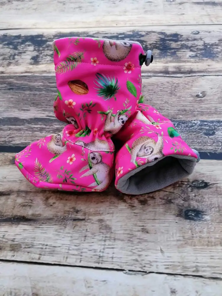 Materiál botiček je sice pružný, ale ne tak, jako jsou třeba ponožky, nebo punčocháče. Botička je prostorná i pro další vrstvy oblečení, které pravděpodobně miminko nosí (punčochy, ponožky atd.).