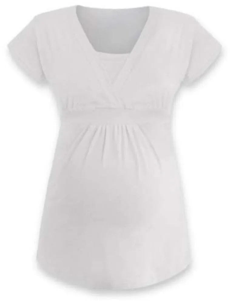 Tunika dole rozšířená do "A", se vsadkou pro diskrétní a pohodlné kojení. Řasení nahoře na bříšku umožňuje velkou roztažnost tuniky i v těhotenství a po porodu skryje tento volný střih předního dílu bříško.