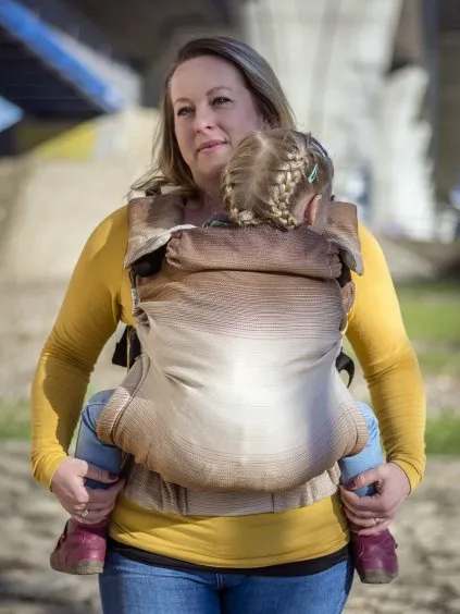 Vhodné od 2 měsíců do 2,5 let (5–20 kg). Užší panel, nižší opěrka. Ideální první nosítko na celé rané nosící období.