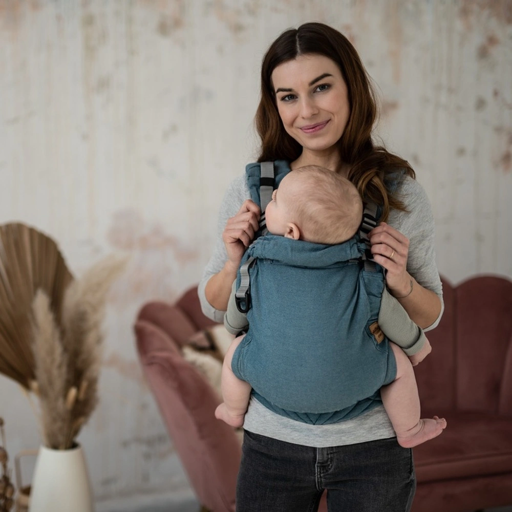 Unikátní systém ramenních popruhů se přirozeně tvaruje na ramena a záda nosiče. Váha dítěte se rovnoměrně rozloží – bez tlaku na trapézy ani bederní páteř.
